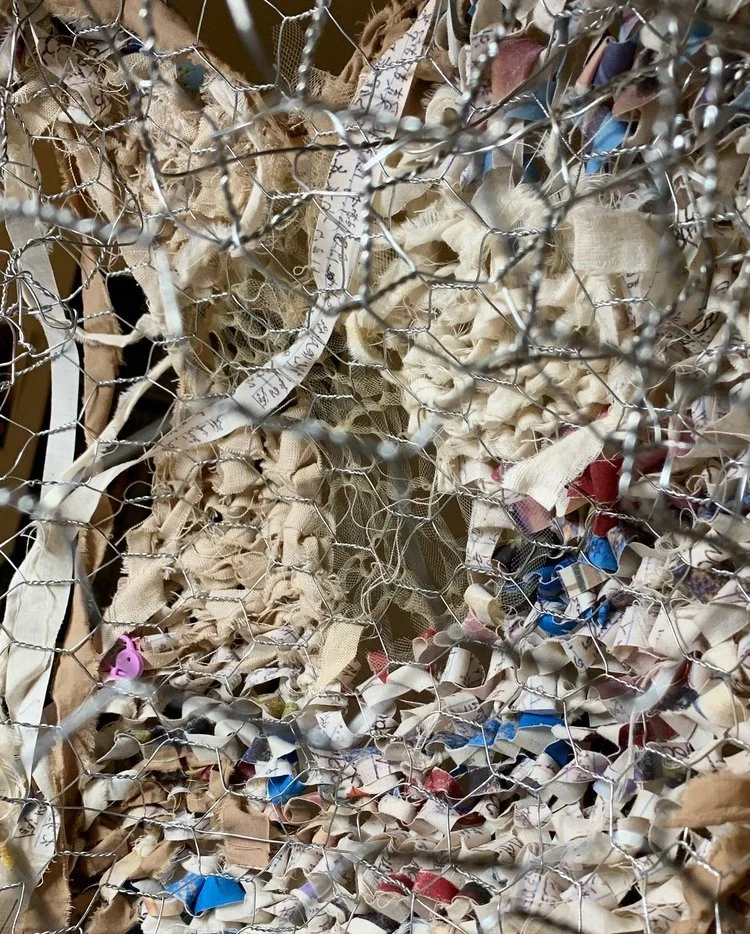 “I’m allowed to lay down what my family gave me” is an attempt at piecing together memory and knowing. As someone who is estranged from family, I have struggled to understand my relationship to my cultural identities and how I fit within our community's stories. With this piece, I work with my fragments—scavenging for childhood photos, Google translating old family documents, screenshotting street view images of locations I've identified from my family's immigration journey, and reading old journals from living back home—and image-transfer these fragments by hand onto cloth to weave. This is a ghostly understanding of what has clothed and sheltered me. I honor and carry its regrets, silences, hopes, and anger. And then I learn to set them down.